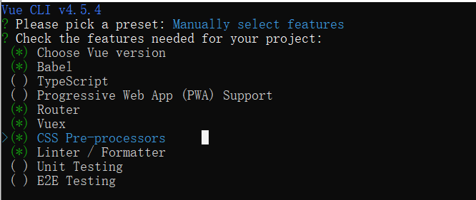 // css预处理器 Linter / Formatter // 代码提示 Unit Testing // 单元测试 E2E