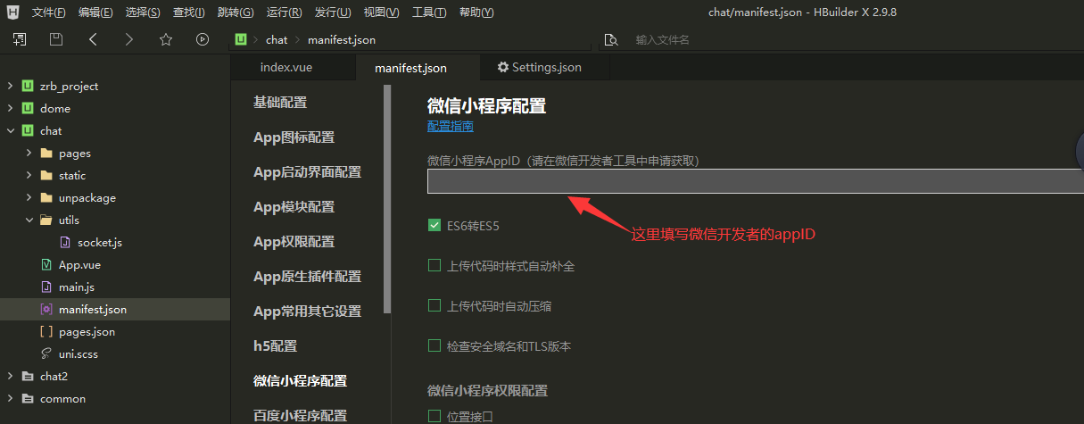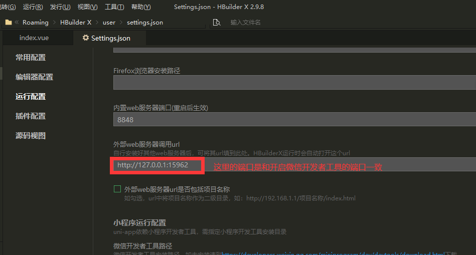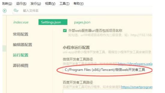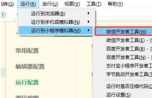 在运行配置里面设置微信开发者工具的路径,如下图所示: